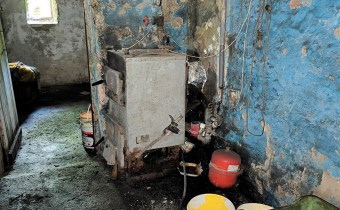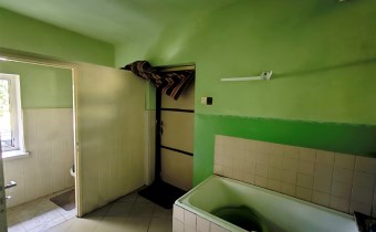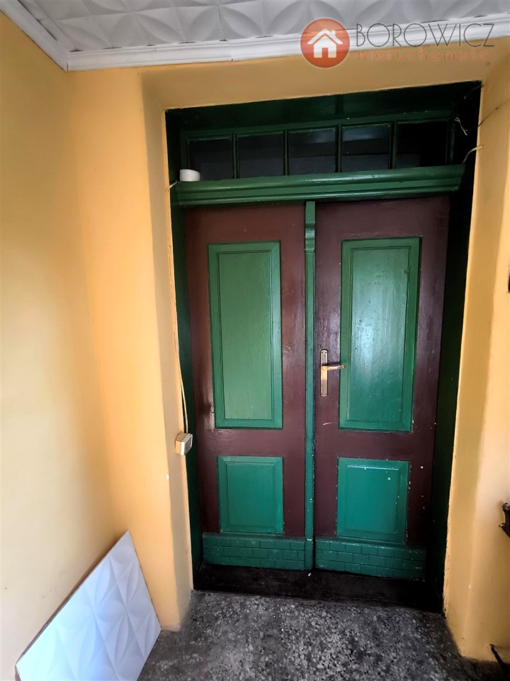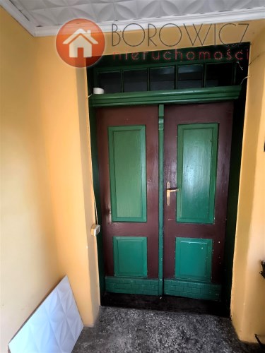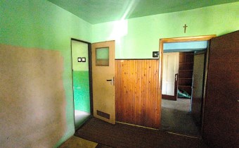 Wejście poprzez ganek i sień. Całość wymaga remontu generalnego.