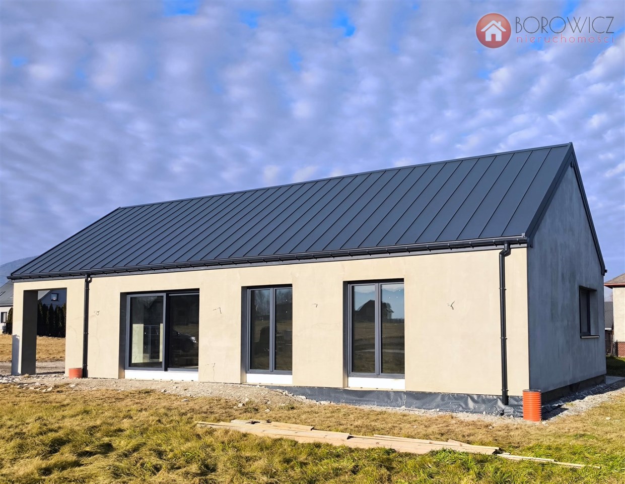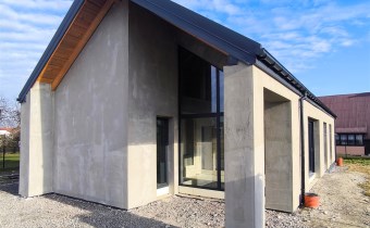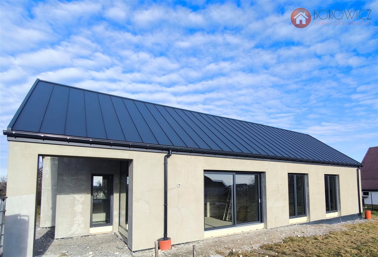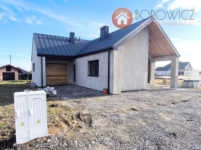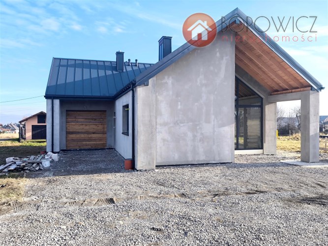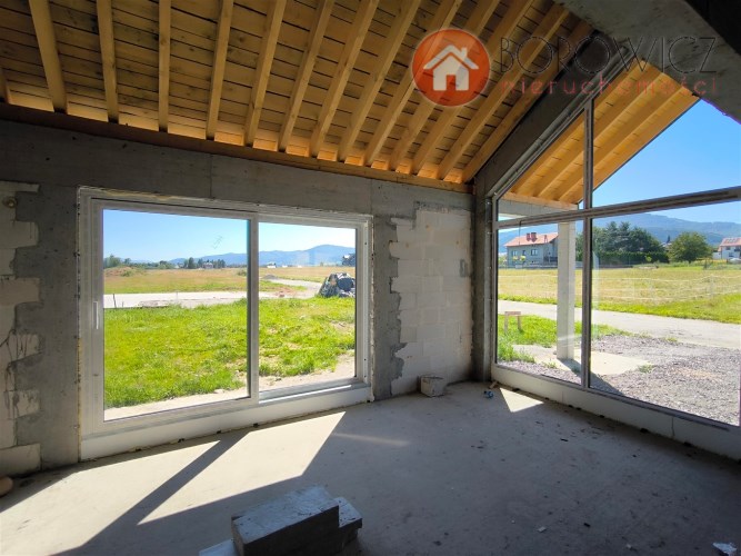 Parterowy dom jednorodzinny z garażem - do sprzedania na obecnym etapie budowy w stanie surowym zamkniętym + dodatkowo wykonane ocieplenie zewnętrzne styropianem. Widokowa lokalizacja - Godziszka, gm. Buczkowice. Szybki dojazd do Bielska-Białej drogą S1. Sąsiedztwo domów jednorodzinnych, widok na góry.