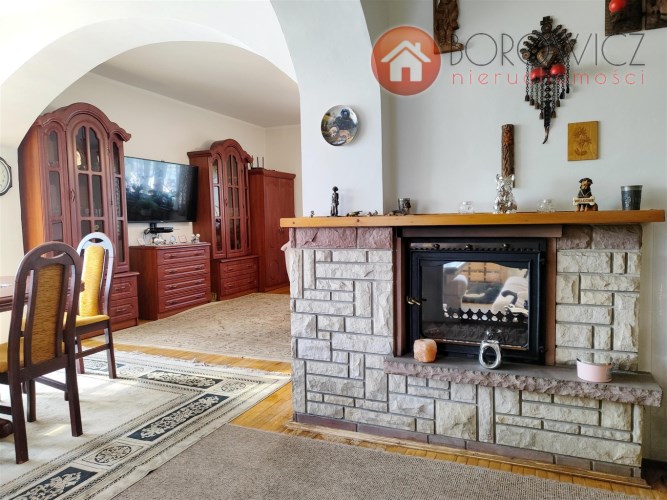 Rolety zewnętrzne w części mieszkalnej i wewnętrzne w całym budynku System alarmowy i kamery wokół domu, wideodomofon. Media: Wodociąg gminy - wymienione przyłącze Gaz - przyłączony Kanalizacja - 3 osadniki (w planie kanalizacja gminna) Prąd - przyłączony Przyłącze światłowodu Ogrzewanie - gazowe (grzejniki) + kominek dwustronny z rozprowadzeniem do 2 pokoi.