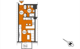 Ma ono powierzchnię użytkową 30,20 m² i składa się z pokoju dziennego połączonego z jadalnią i aneksem kuchennym (20,78 m²), korytarza (4,94 m²) oraz łazienki (4,48 m²). Dodatkowym atutem lokalu jest balkon o powierzchni 3,35 m².