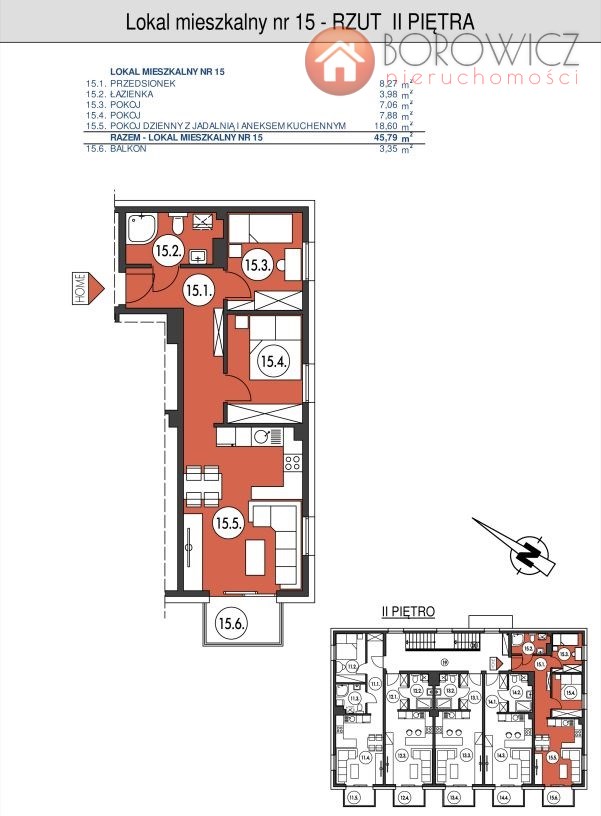 W tej ofercie proponujemy Państwu mieszkanie nr 15, usytuowane na drugim piętrze.