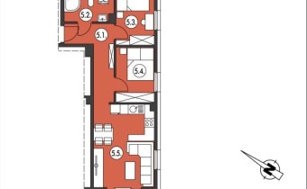 Ma ono powierzchnię użytkową 46,08 m² i składa się z pokoju dziennego połączonego z jadalnią i aneksem kuchennym (18,61 m²), przedsionka (8,26 m²), sypialni (7,03 m2), pokoju (7,90 m2) oraz łazienki (4,28 m²). Dodatkowym atutem lokalu jest balkon o powierzchni 3,35 m².